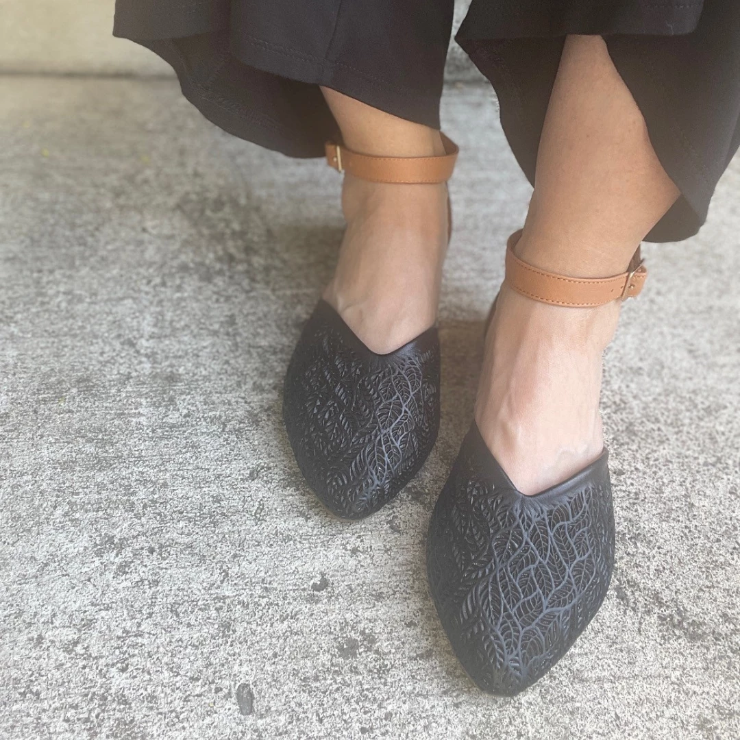 The Alejandra from Anesha is a chic two-piece flat that features a sleek printed leather pointed toe, with an easily adjustable ankle strap design. You’re going to love the versatility and unique styling details. With a leather wrapped soft cushion insole and flexible shock absorbent rubber outsole, you’ll be hitting the streets in stylish comfort.