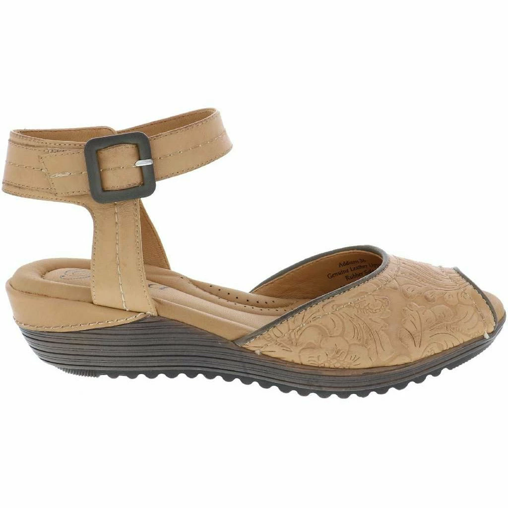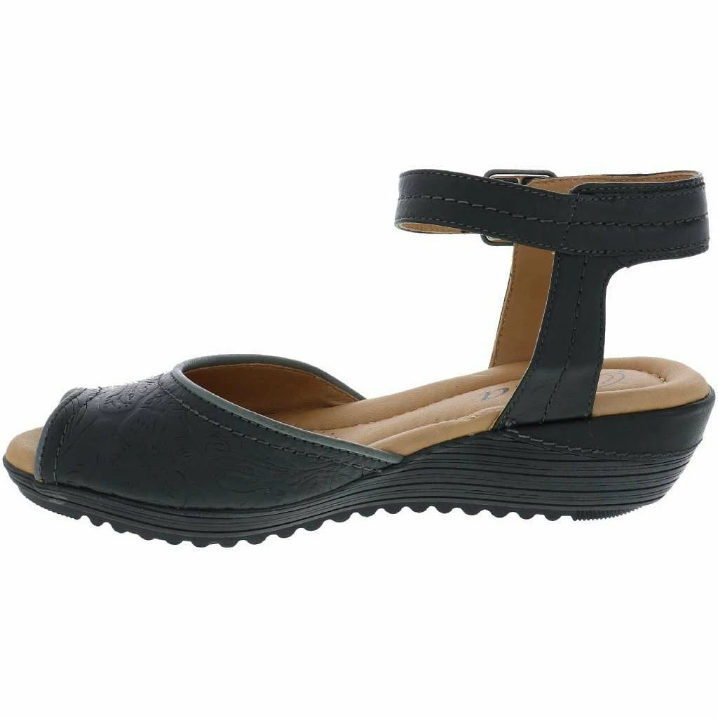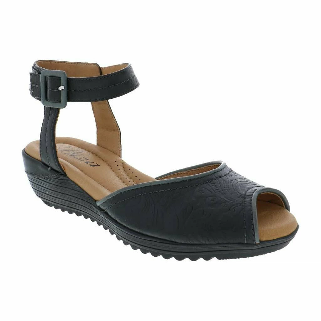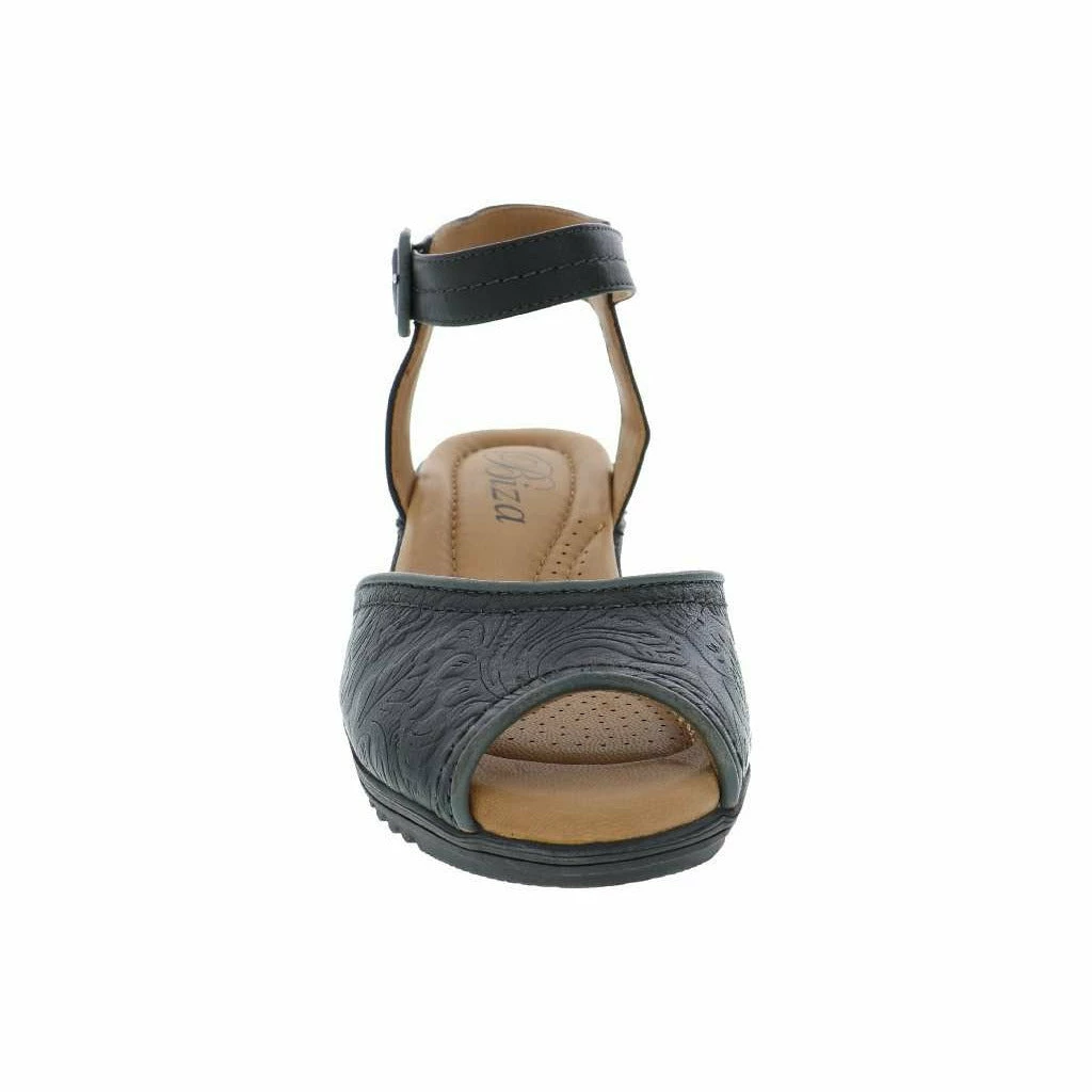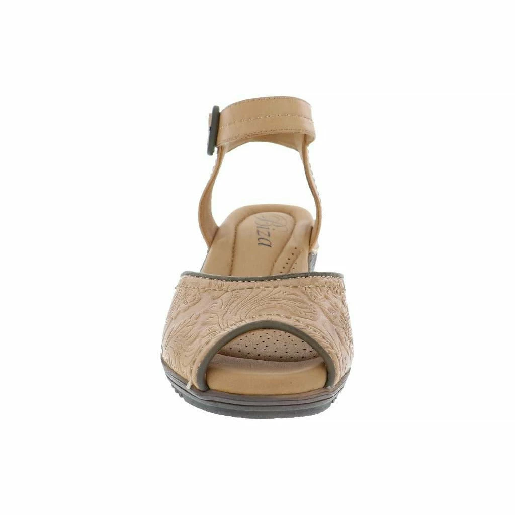 The Addison sandal by Biza® Shoes is a retro inspired Women’s Peep Toe Sandals with our signature floral leather emboss detail. The leather wrapped memory foam insole and flexible rubber wedge outsole is sure to elevate your style. The hidden Velcro buckle strap closure ensures a perfect fit every time.