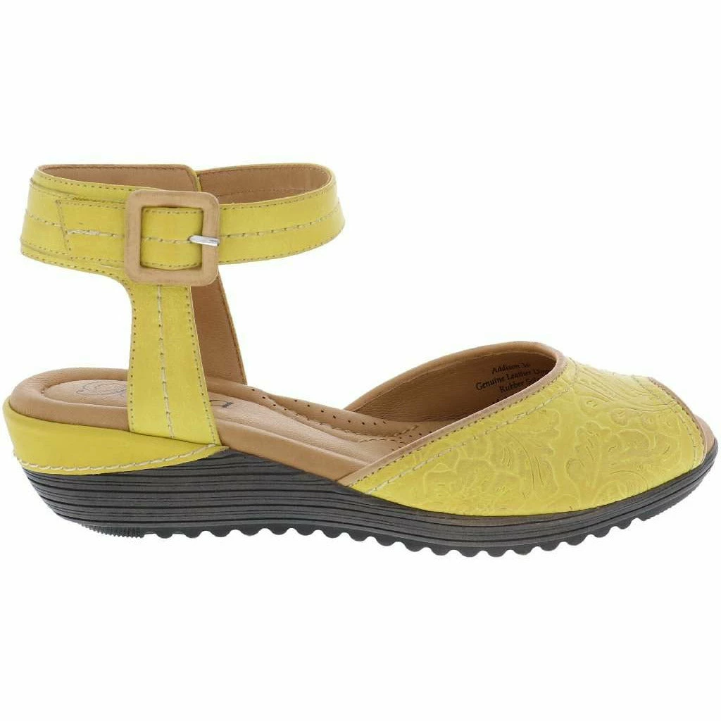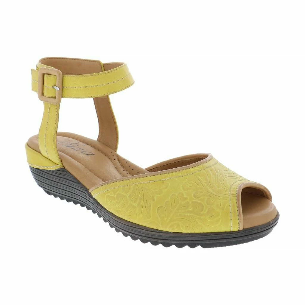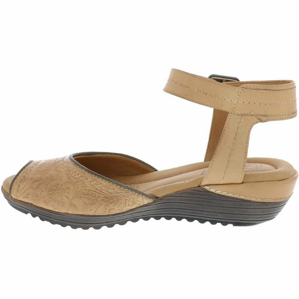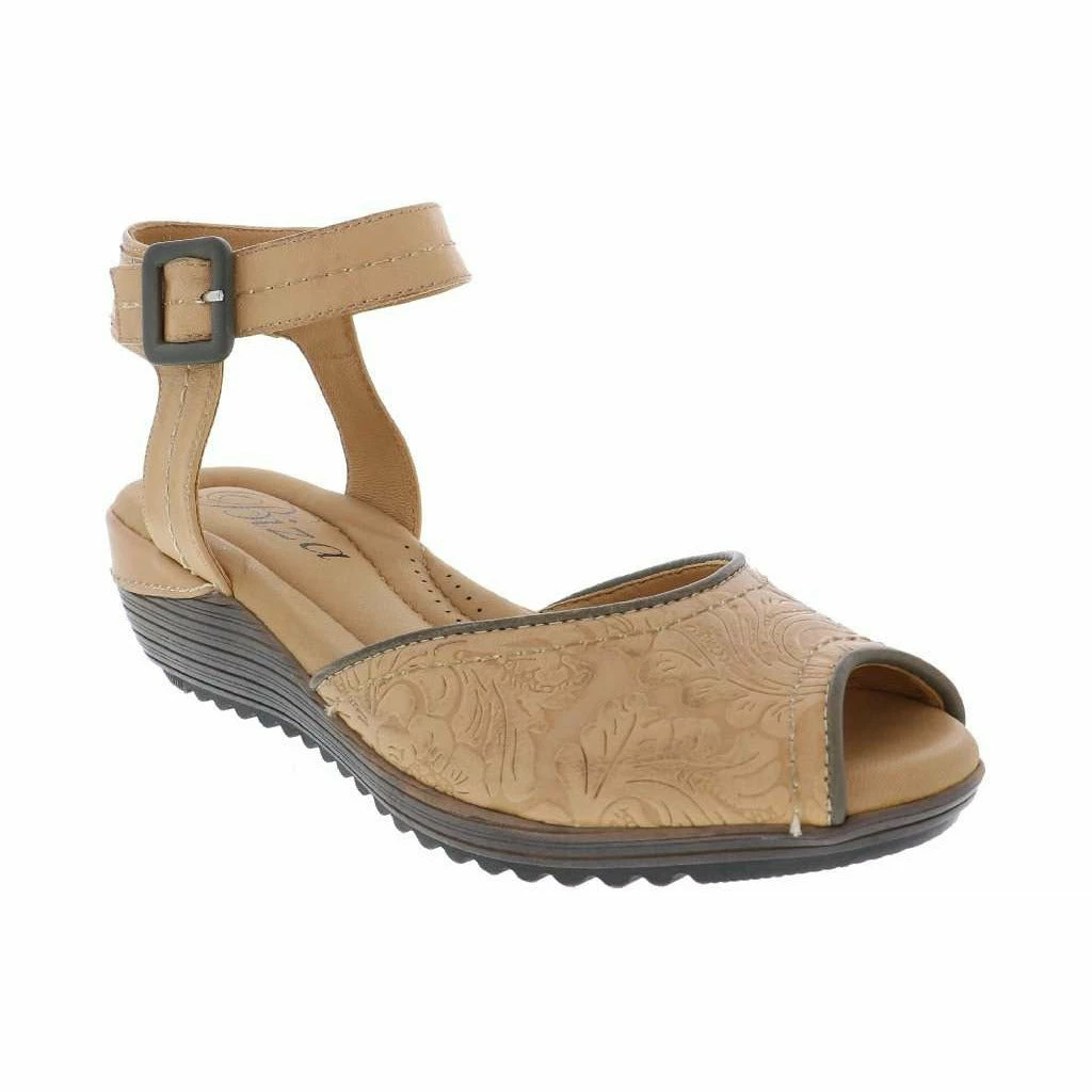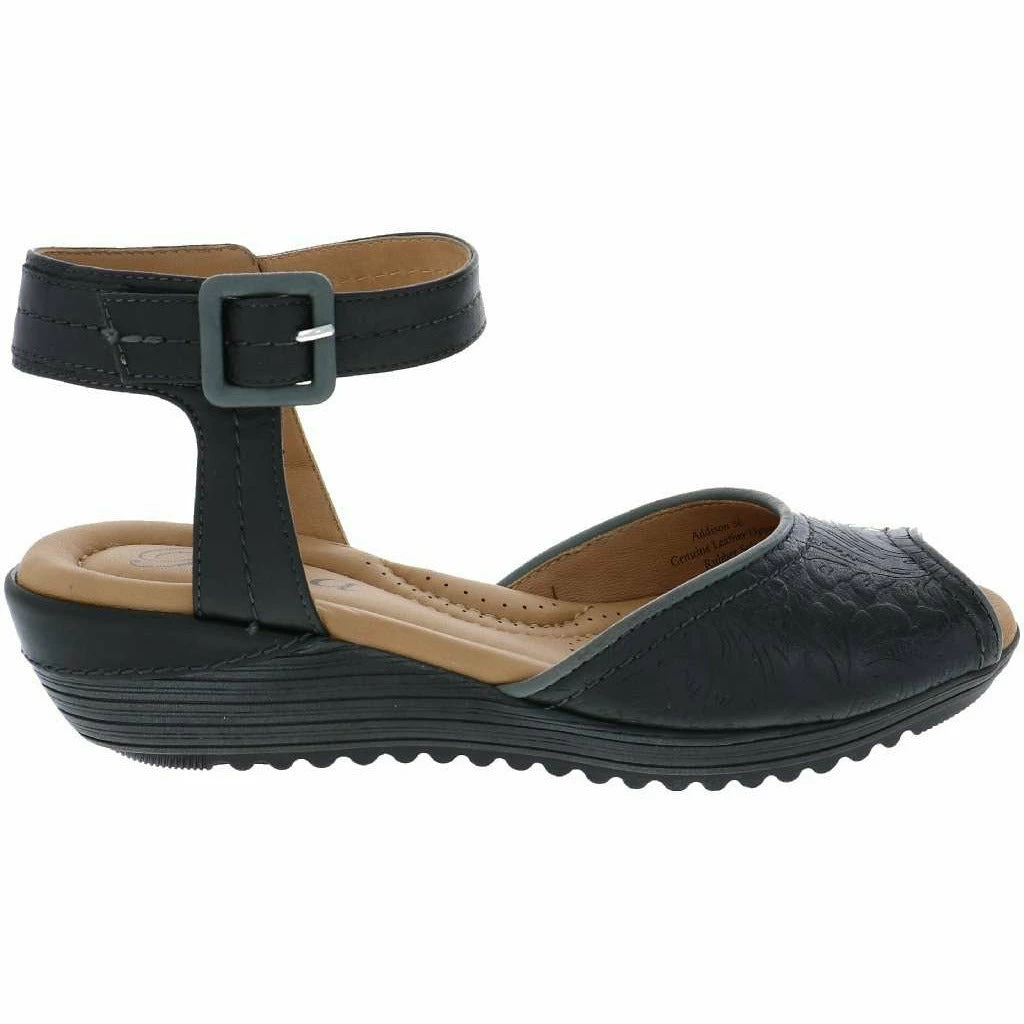 The Addison sandal by Biza® Shoes is a retro inspired Women’s Peep Toe Sandals with our signature floral leather emboss detail. The leather wrapped memory foam insole and flexible rubber wedge outsole is sure to elevate your style. The hidden Velcro buckle strap closure ensures a perfect fit every time.