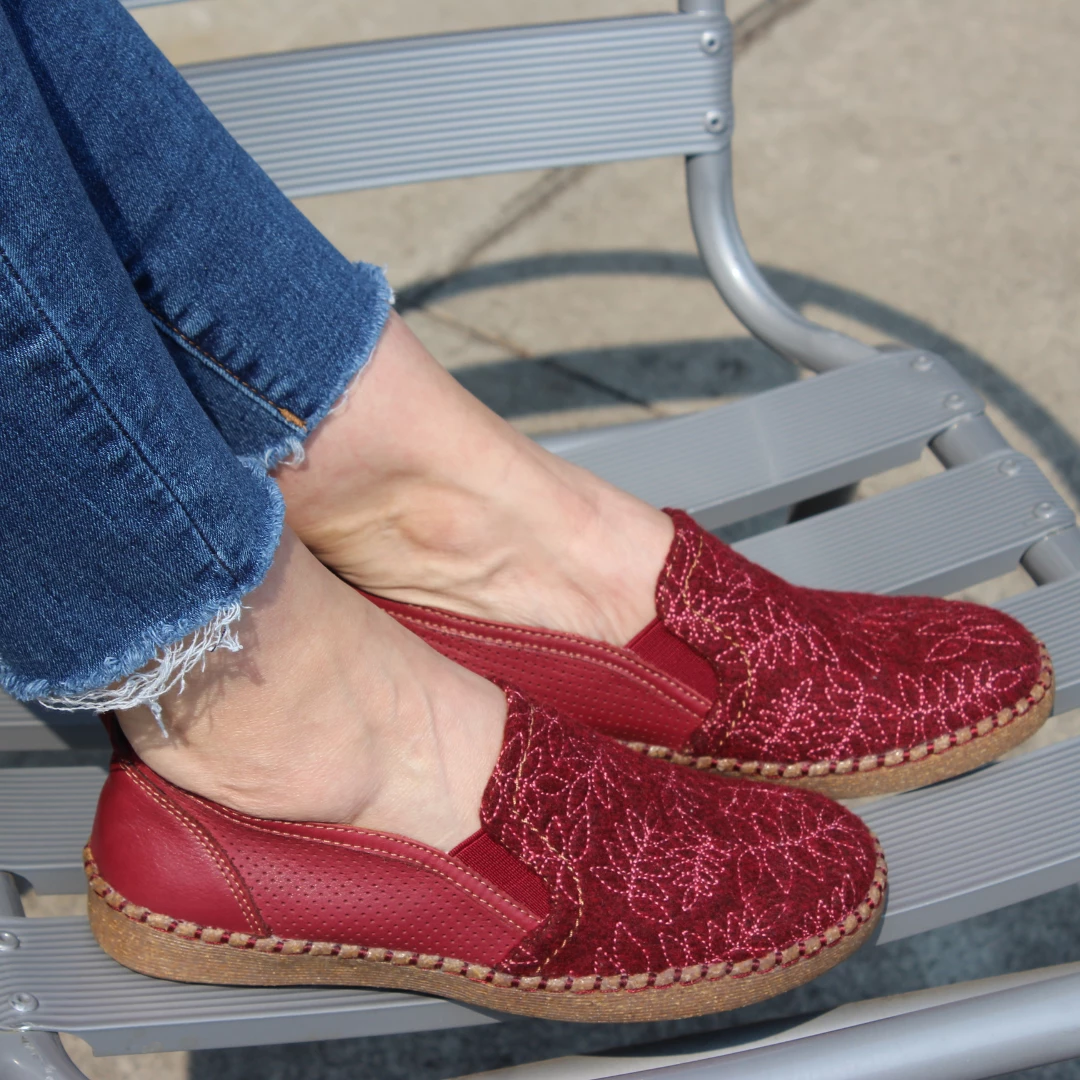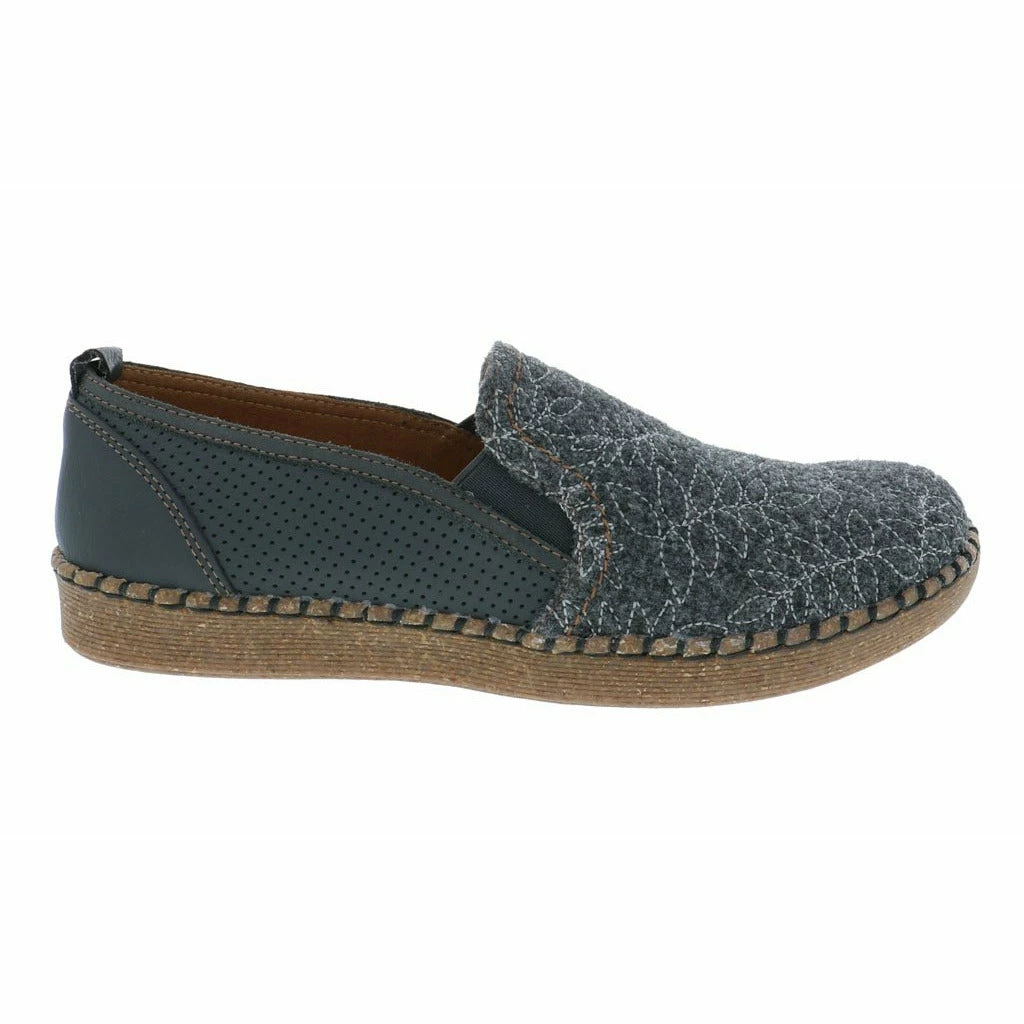 Slip on and head out on an adventure in this stylish felt and leather combo women’s walking shoe by Biza Shoes. The Audrey features a feminine silhouette with double elastic gore detailing making them a breeze to put and take off after a long day on your feet. The microfiber lined memory foam insole absorbs shock and can easily accommodate custom orthotics. You’re going to love the versatility of this adorable women’s slip on shoe.