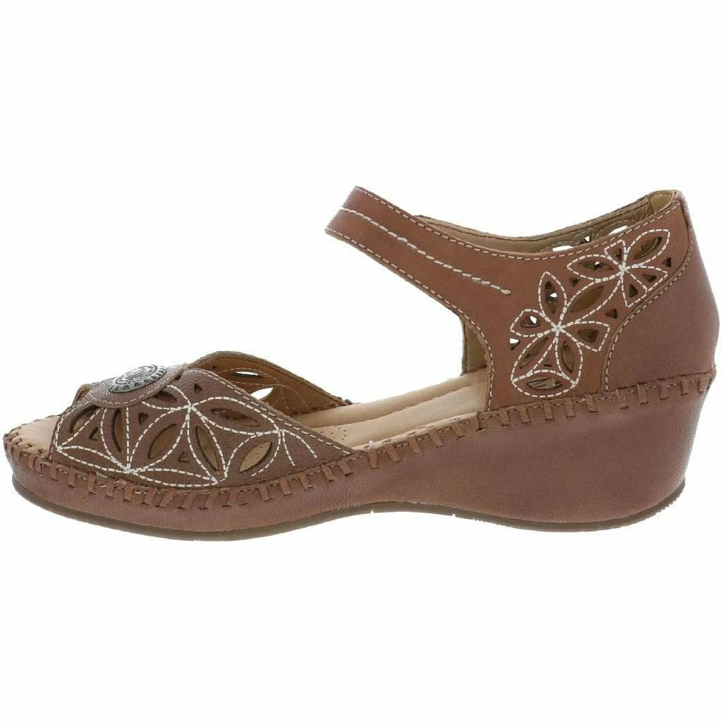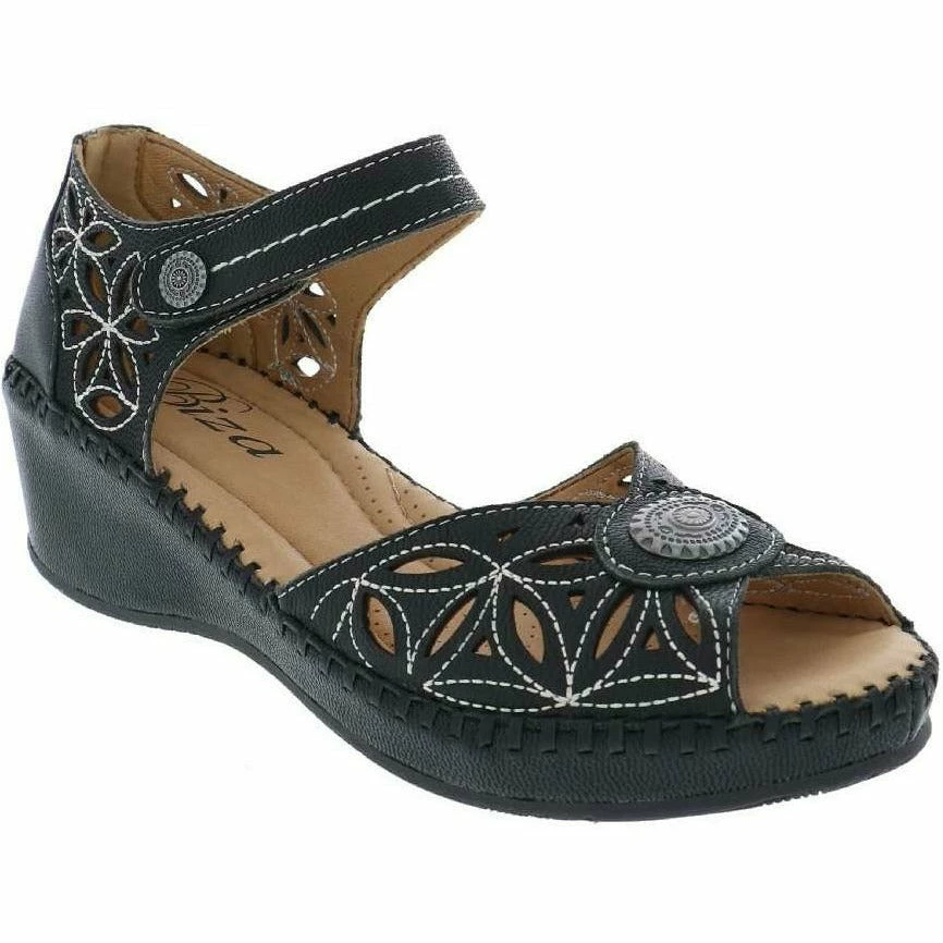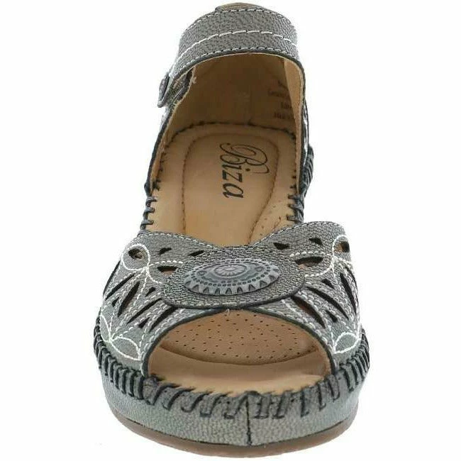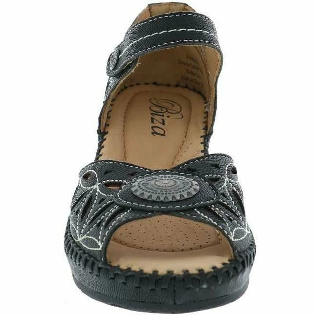 If you are looking for women’s leather sandals with arch support, The Brooklyn sandal by Biza® Shoes features our signature hand stitched wedge construction with our leather wrapped shock absorbing memory foam cushioned insole. This sandal features perforated leather and stitch detailing with a unique ornament design. The adjustable Velcro instep strap ensures a perfect fit every time. These are premier women’s leather sandals with arch support.