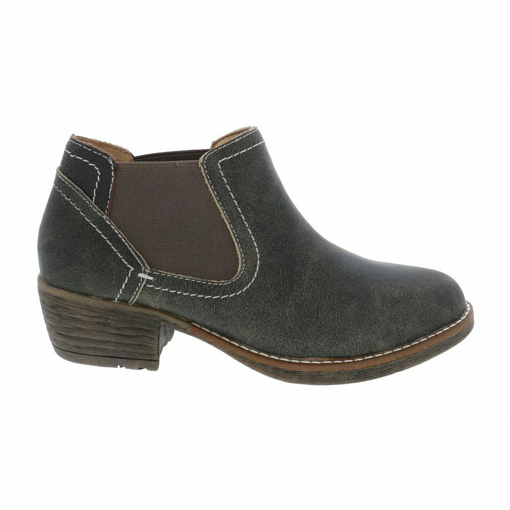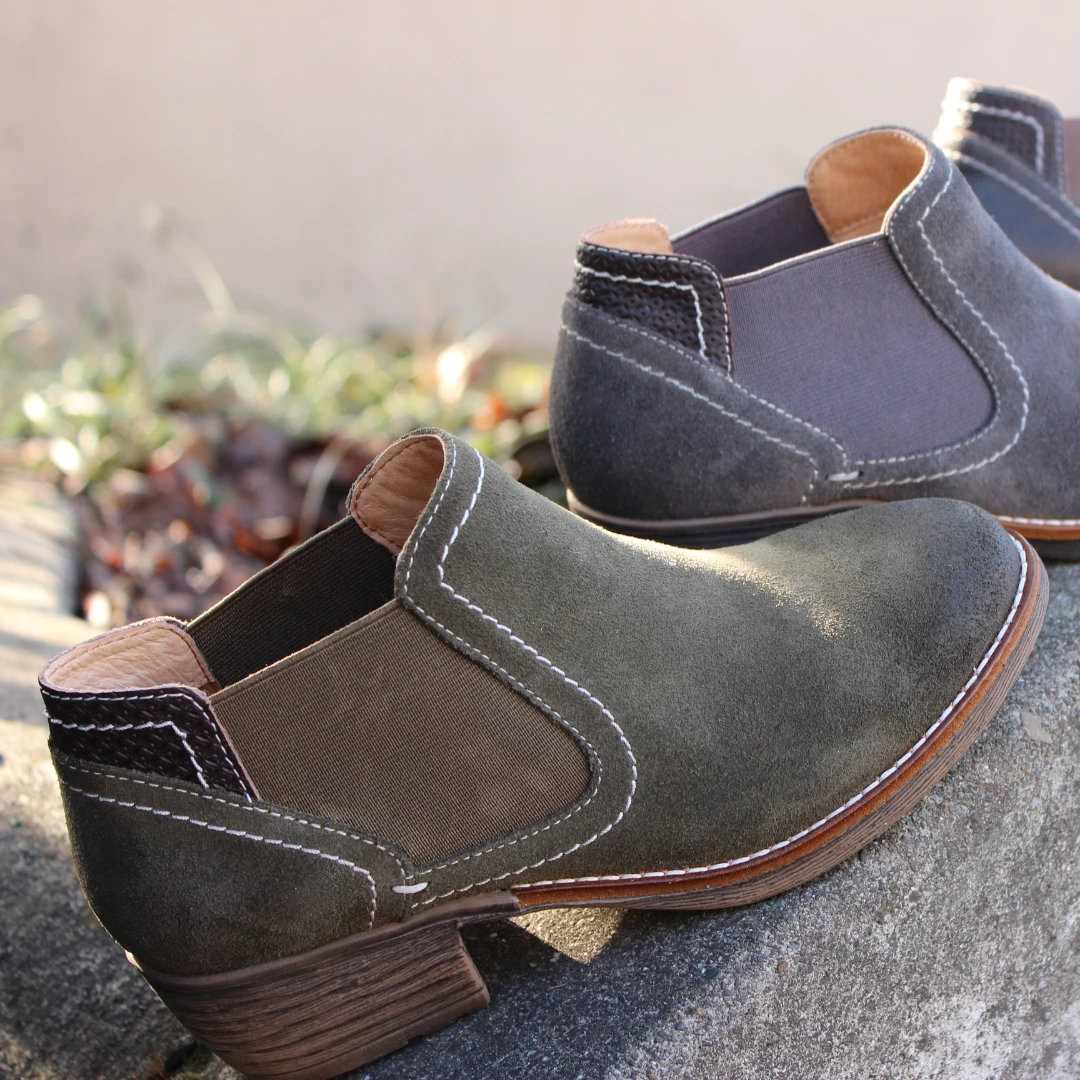 Add a little western flair with the Carson slip-on women’s bootie by Biza Shoes. This adorable double elastic gore slip-on boot features a stacked rubber heel outsole giving you the perfect amount of lift without sacrificing on comfort. The removable microfiber lined memory foam insole absorbs shock and can easily accommodate custom orthotics. The stylish textured genuine leather upper has been treated with Scotchgard, creating a water and stain resistant barrier, giving you peace of mind with every step.
