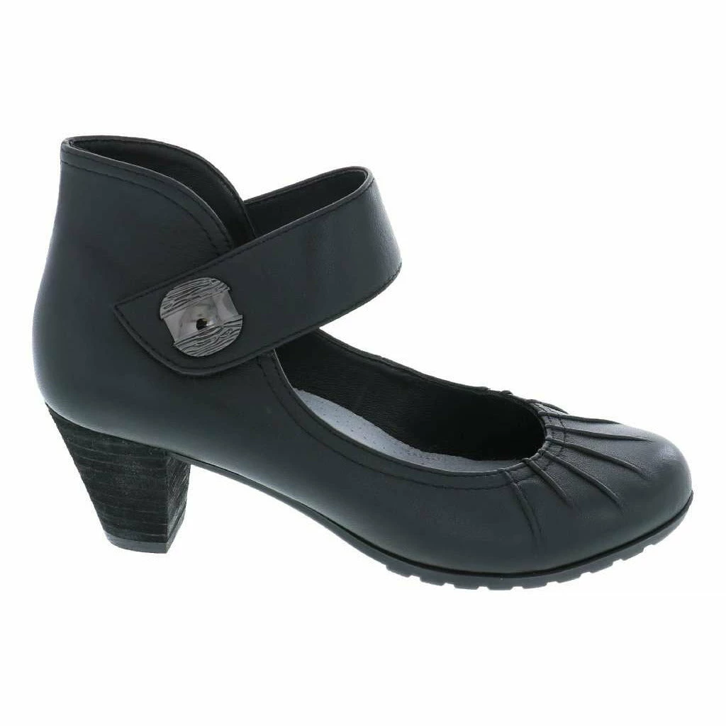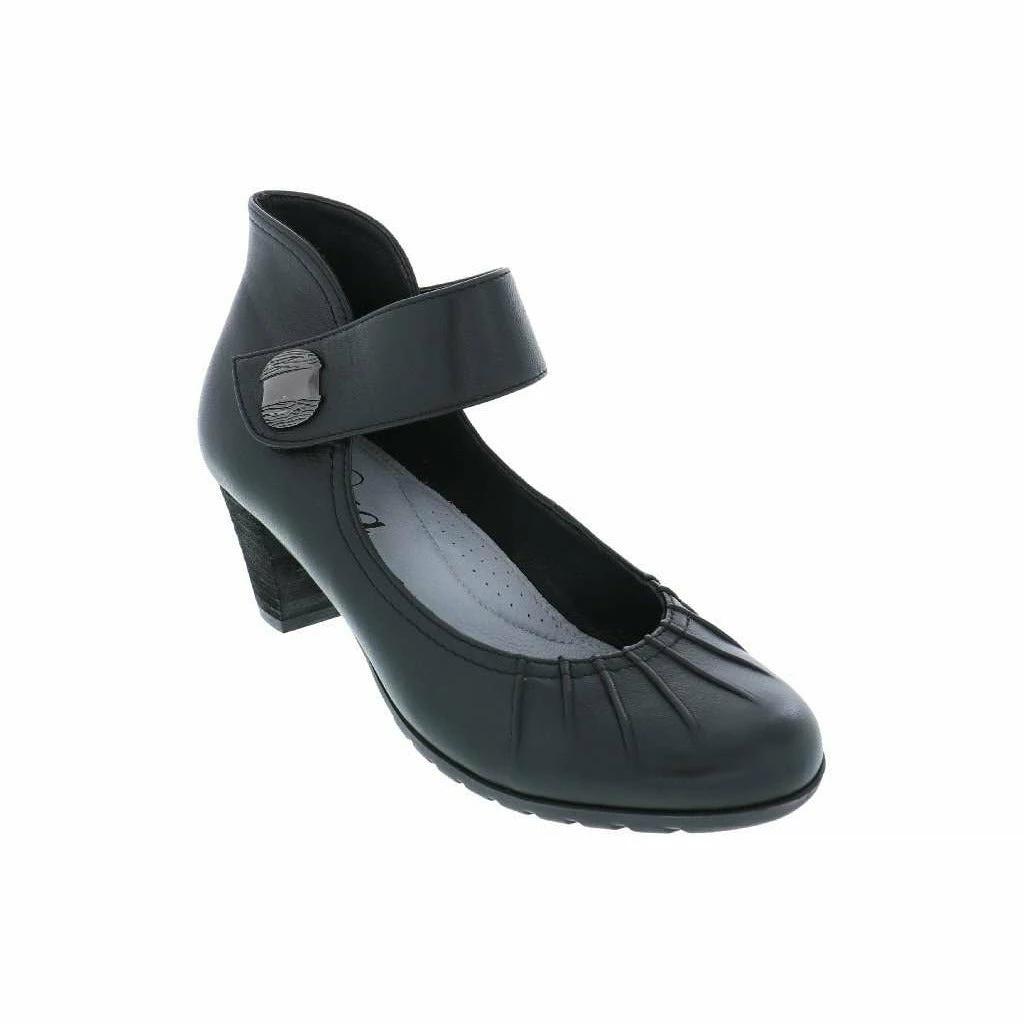 Step out in style with Gigi by Biza® Shoes. This all leather Mary Jane inspired comfort women’s dress shoe features a unique pleat design with a modern ornament detail. The sophisticated high cut construction looks great on the foot and the adjustable Velcro strap ensures you get a perfect fit. The insole cushions the foot in plush memory foam while the outsole absorbs shock with every step. High heel lovers don’t miss out on this seasons must have dress shoe by Biza® Shoes.