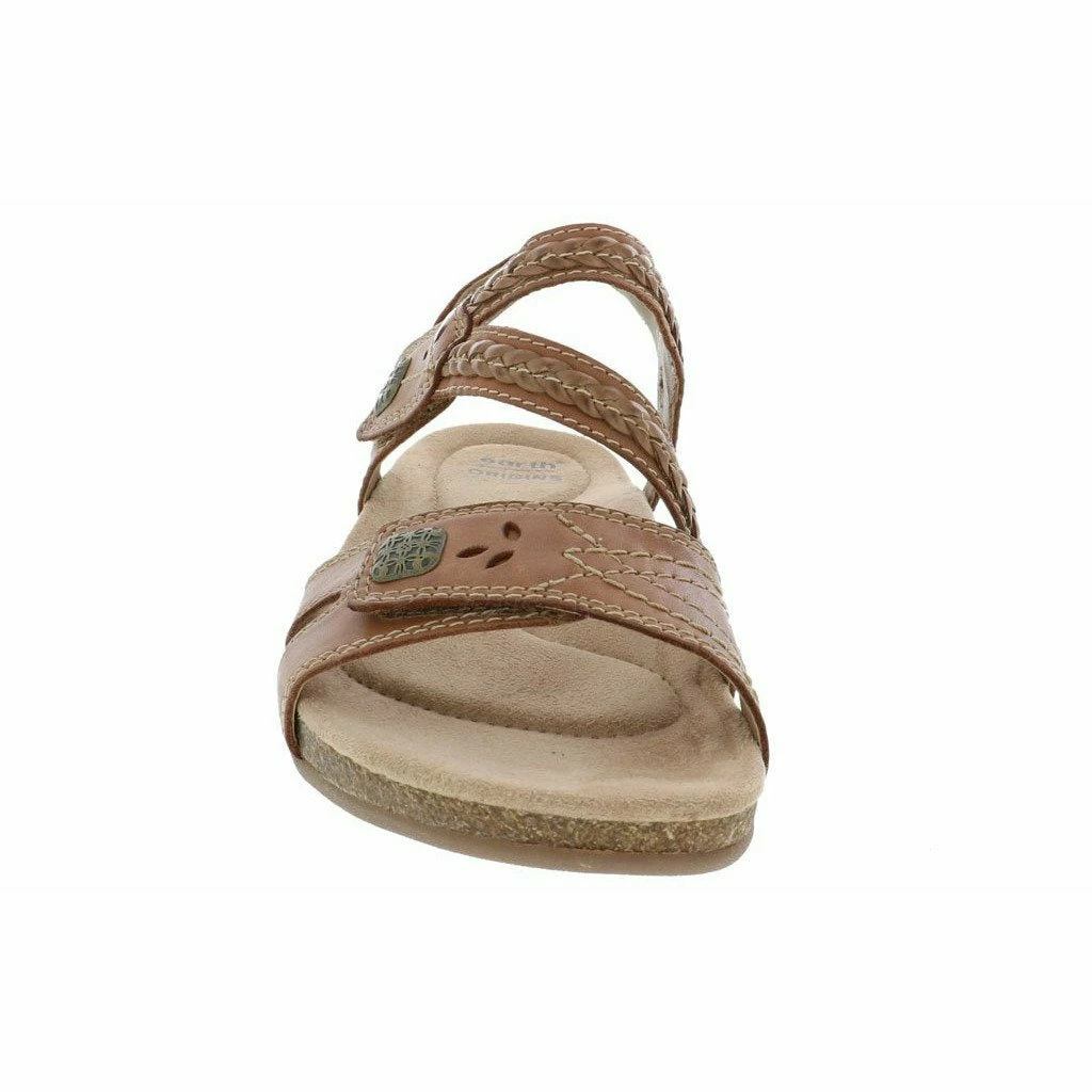 Take every day in support and stylish stride wearing these womens sandals. Although designed to promote foot health, they have a modern aesthetic that makes them suitable for everyday wear.The leather straps are adorned with braided accents, stitching and decorative cutouts. They stay secure thanks to an adjustable heel strap and have built-in arch and heel support for added stability.