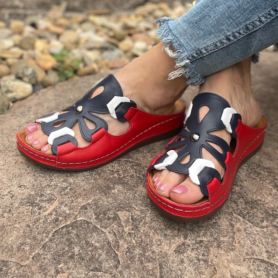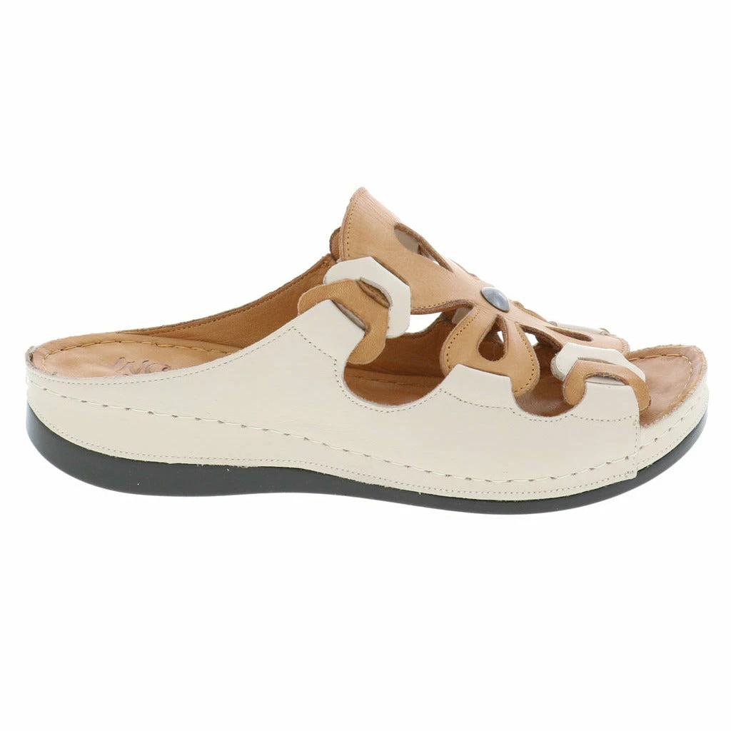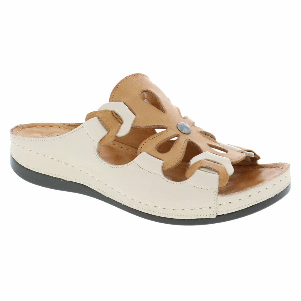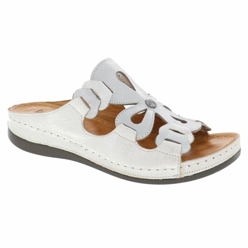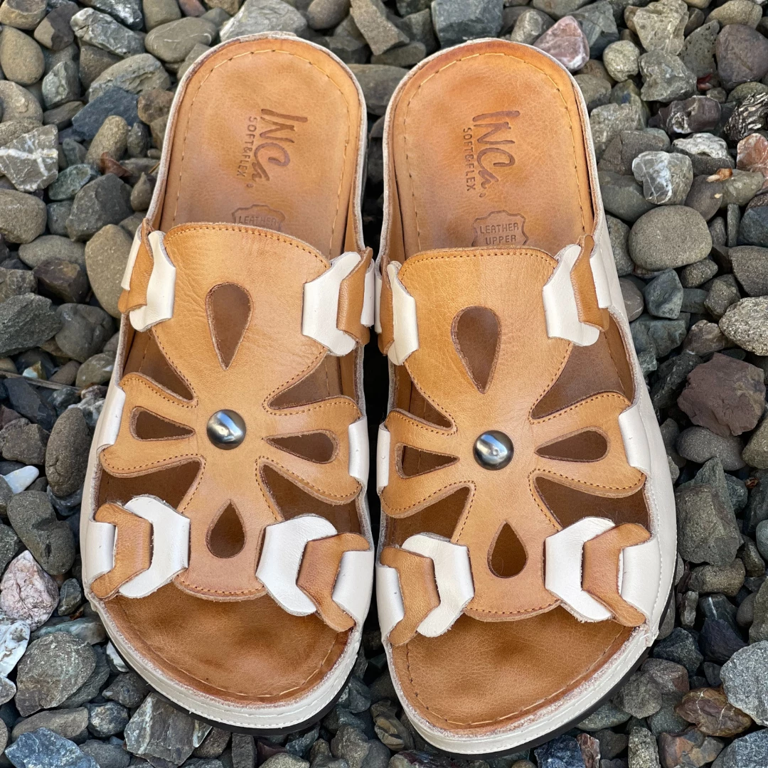 Enjoy soft stylish slip-on comfort with Jaylee by INCa. This lightweight all leather women’s sandal features a floral cutout design with unique woven leather detailing. The polyurethane outsole and plush foam insole absorbs shock and creates a pillowlike comfort with every step. The perfect travel companion, this stylish sandal is sure to take you places.