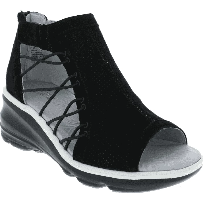 A contemporary athleisure take on the classic wedge, the Naomi is sure to make heads turn. Premium perforated leather, cushioned Memory Foam insoles, and side bungee cords hug your foot as you go from day to night.