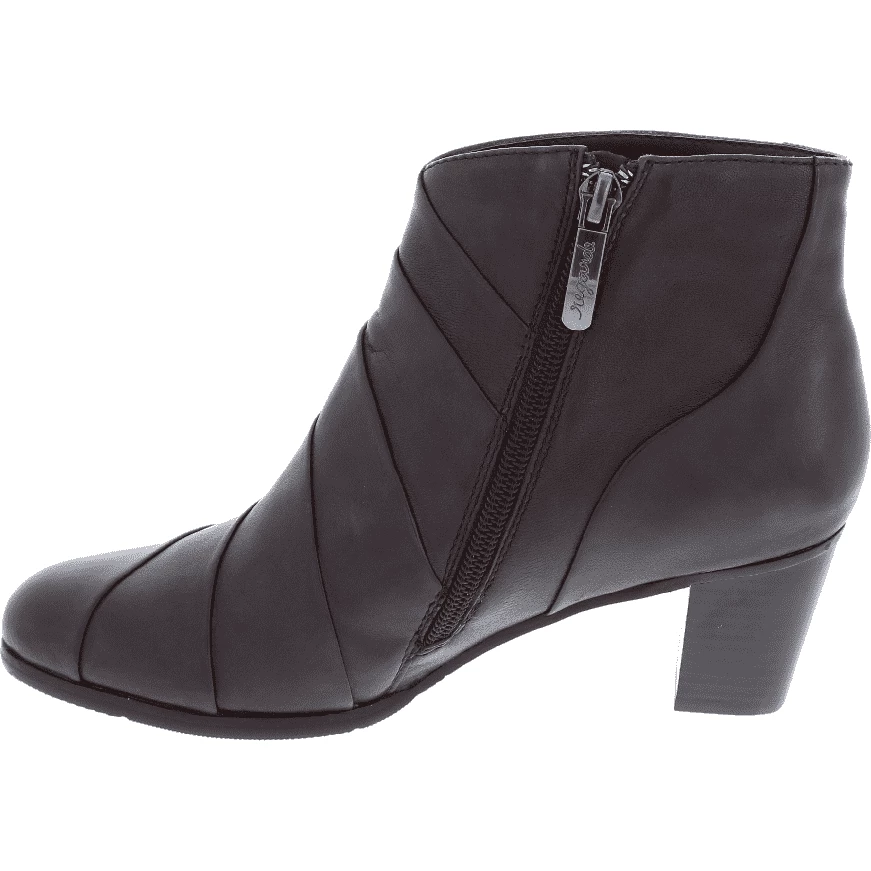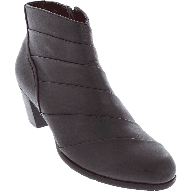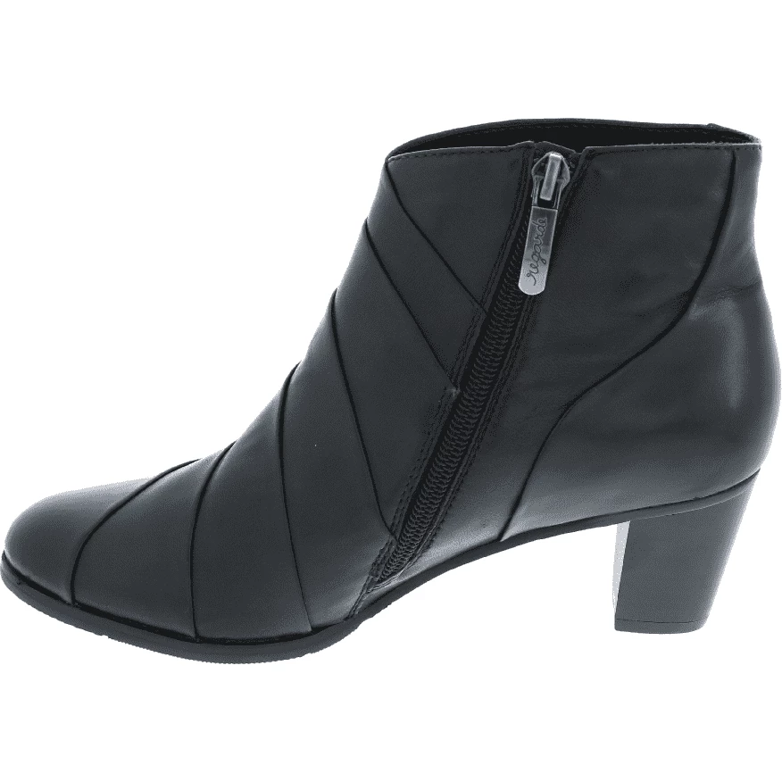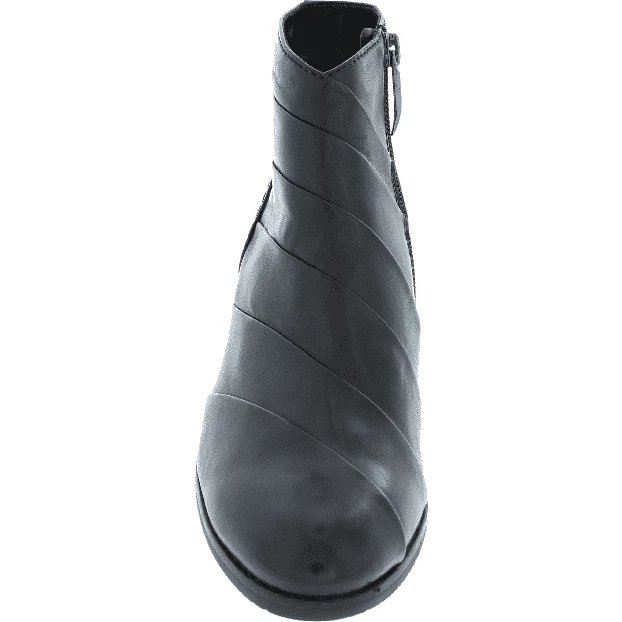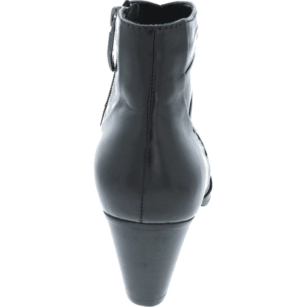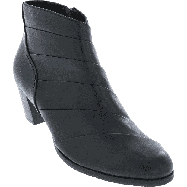 Handcrafted from soft Glove Black leather. The Glove leather patchwork detail, material combination, and stitching details are the essence of this ankle bootie. A 55mm block heel. Fully Lined. Geometric cuts. The stitching is accentuated. An inner zipper for fastening.High-density foam and instant-forming memory footbed.