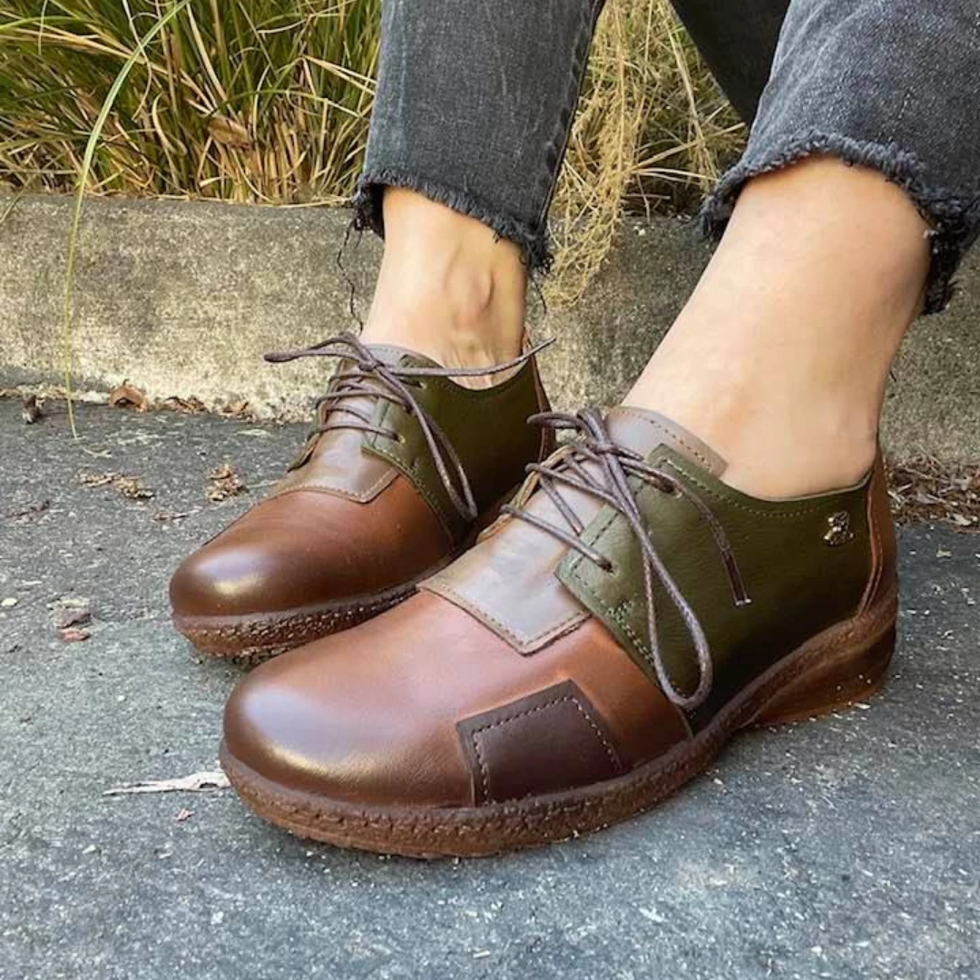 Patchwork detailing and stylish color blocking give this versatile women’s walking shoe by Venus a look all of her own. This artistic inspired genuine leather walking shoe features a plush cushioned removable insole and durable shock absorbent outsole.
