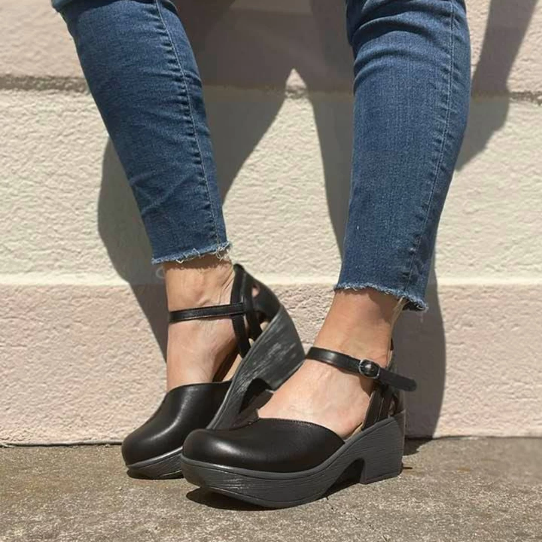 Elevate your style in this ultra-light weight women’s platform wedge by Venus. A true basic, this adorable Mary Jane inspired shoe features genuine leather uppers with memory foam cushioned support. A fully adjustable buckle design closure ensures a perfect fit. The stylish platform polyurethane sole adds a little height without sacrificing comfort.