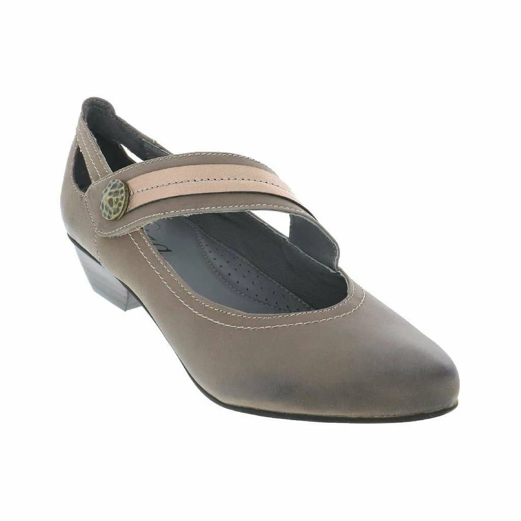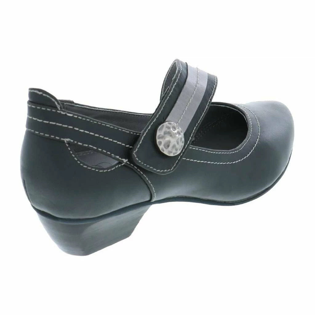 Up your style and step out in comfort with the Dublin women’s dress shoe by Biza Shoes. The two-toned leather asymmetrical Velcro strap adjusts perfectly to the foot while the ornament detail creates a style all its own. Enjoy a low stacked heel and plush memory foam footbed, a winning combination for any dress shoe lover.