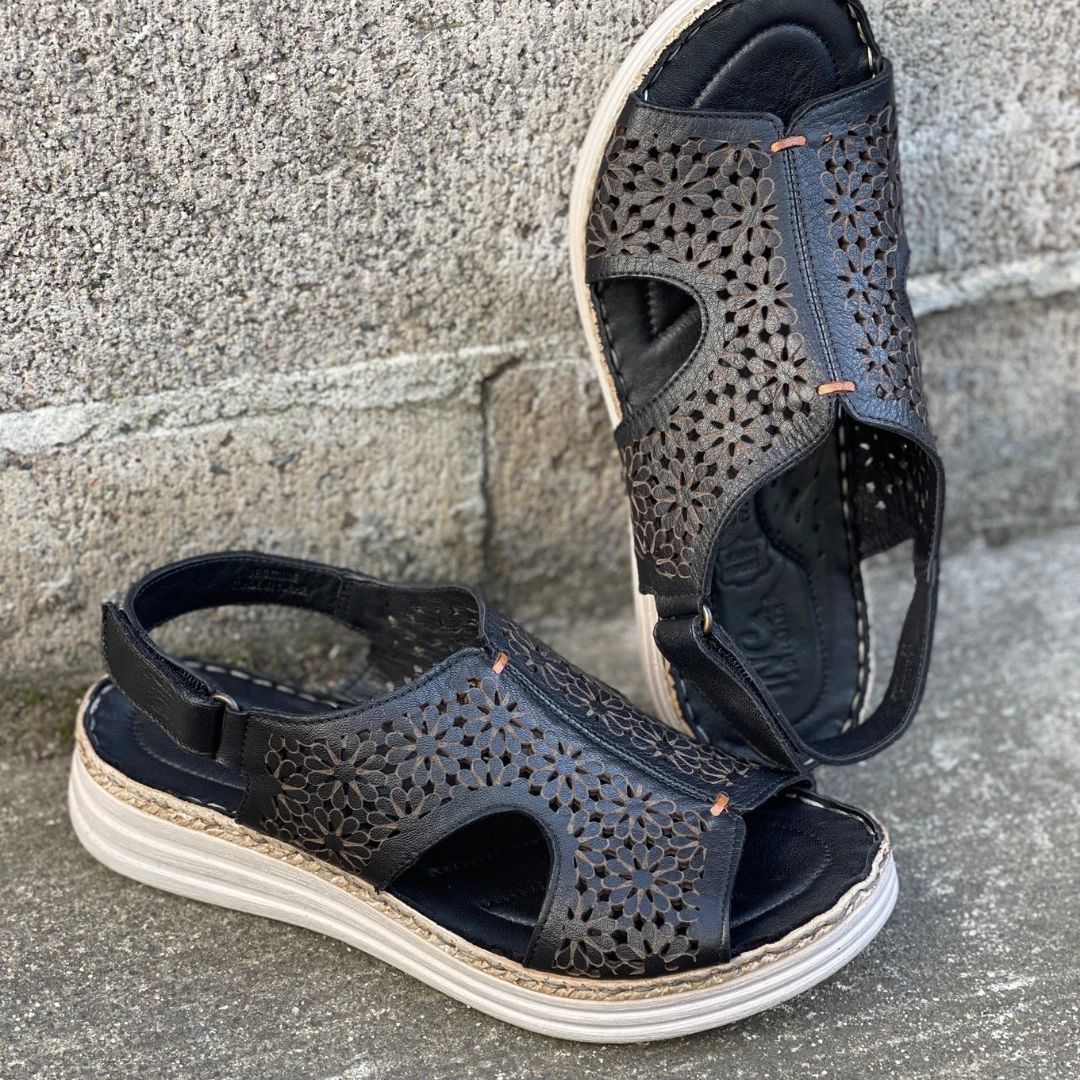 Floral details make the Jasmine by INCa standout from the rest. With lightweight comfort details this women’s sandal is designed to keep you feeling good on your feet. The polyurethane outsole and plush foam insole absorbs shock and creates a pillowlike softness. With an adjustable Velcro back strap design, you’re sure to feel secure with each and every step.