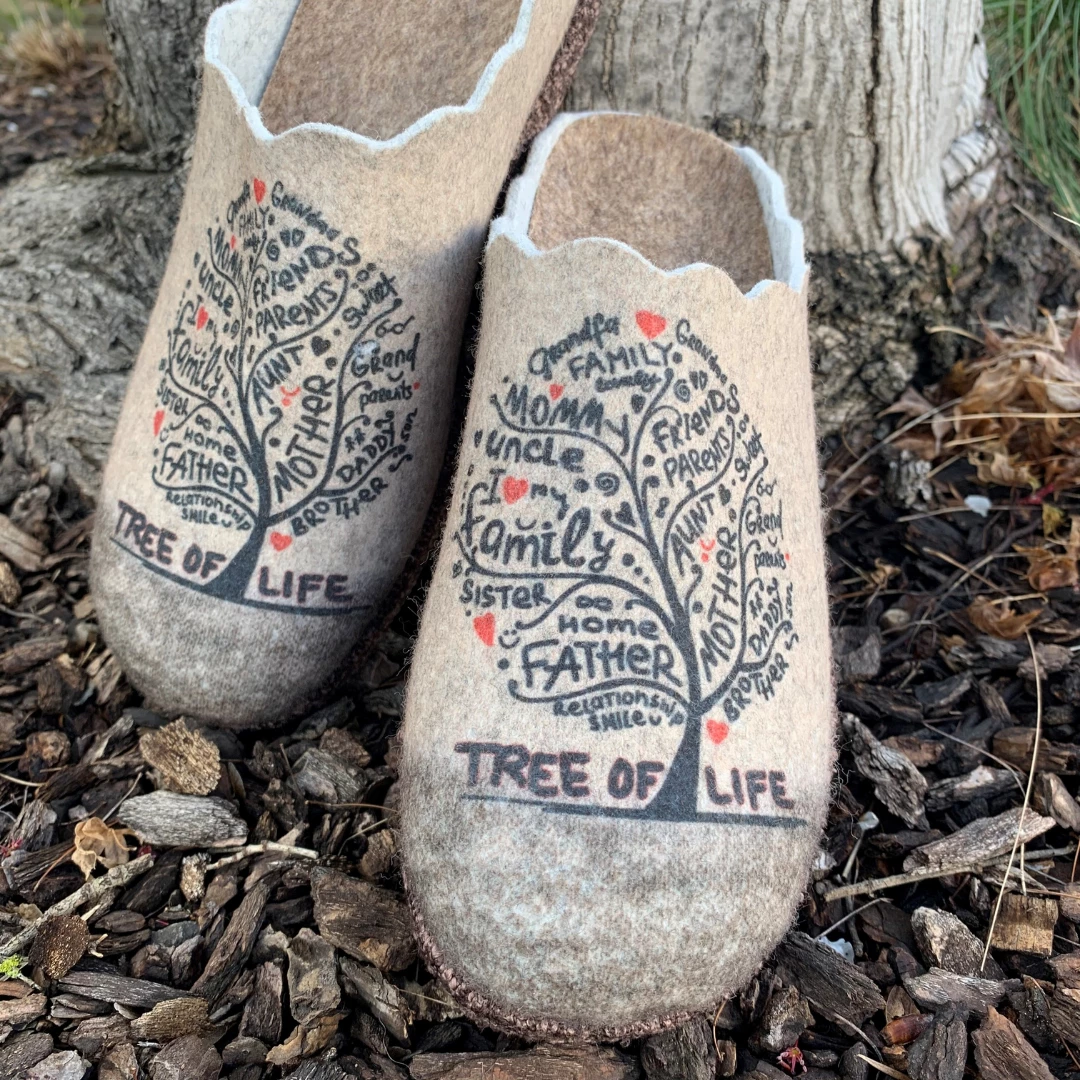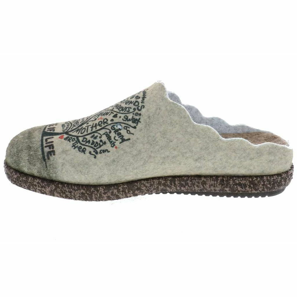 Relax slippers feature 100% wool upper for insulation and a rubber outsole for traction. The interior features a built up arch support on a removable insole that can be swapped for an orthotic if needed. Fun prints on the upper make this a stylish go to for anywhere you go. Relax and see where life takes you.