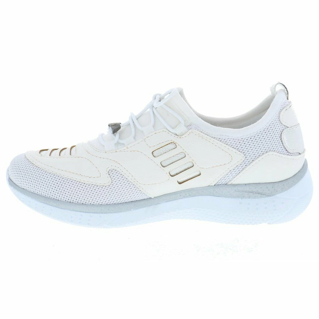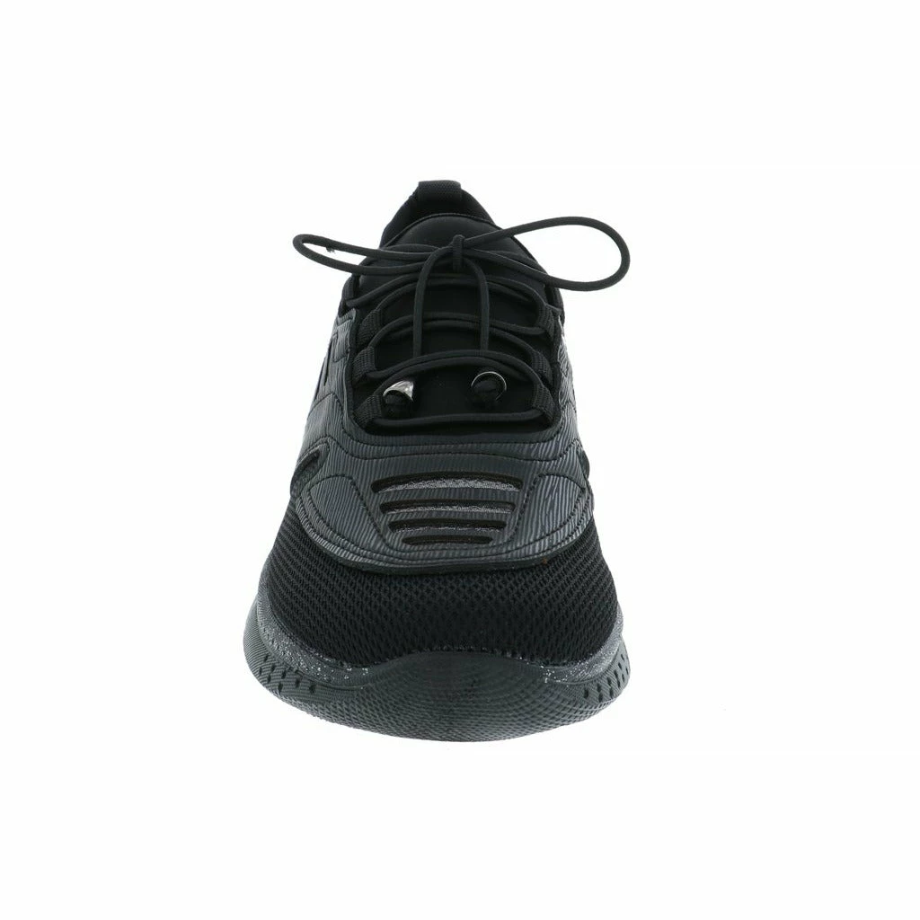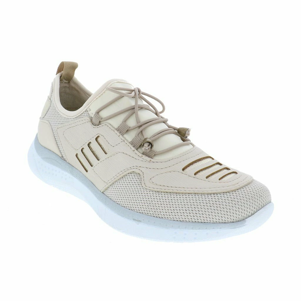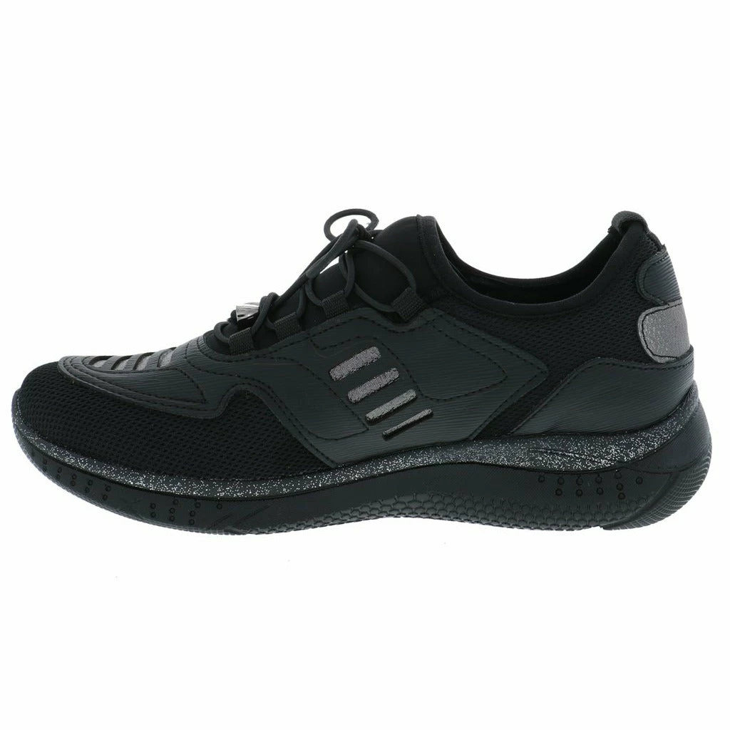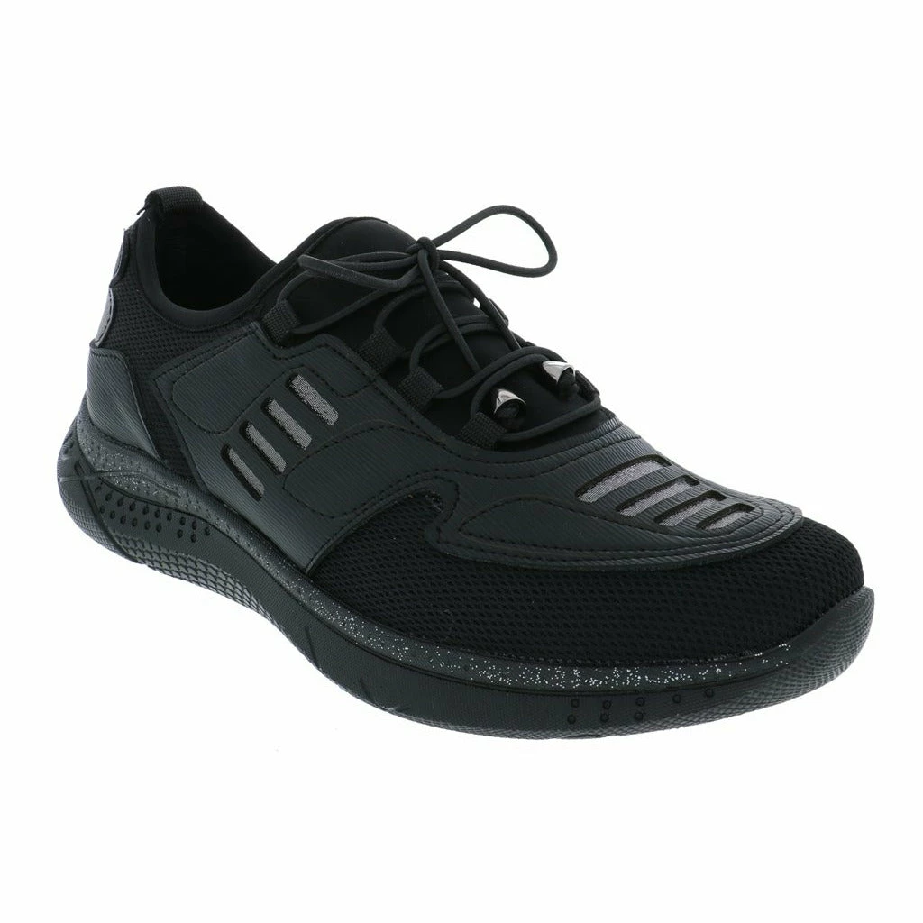 Lace up and go in this stylish slip on women’s walking shoe by Venus. This fabric and mesh light weight sneaker features a modern design with unique lines and details. The removable plush cushioned insole absorbs shock and can also accommodate a personalized orthotic. The polyurethane outsole is light weight and durable keeping you moving ahead in stylish comfort.