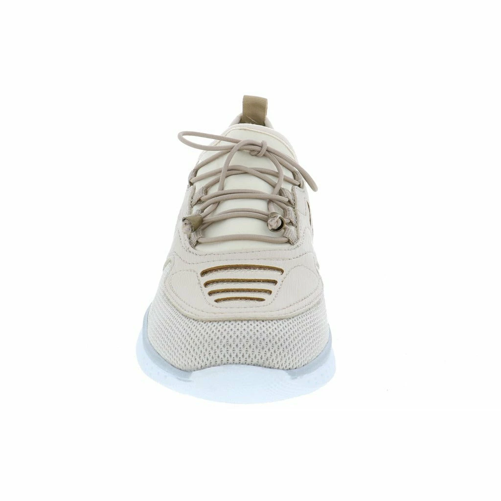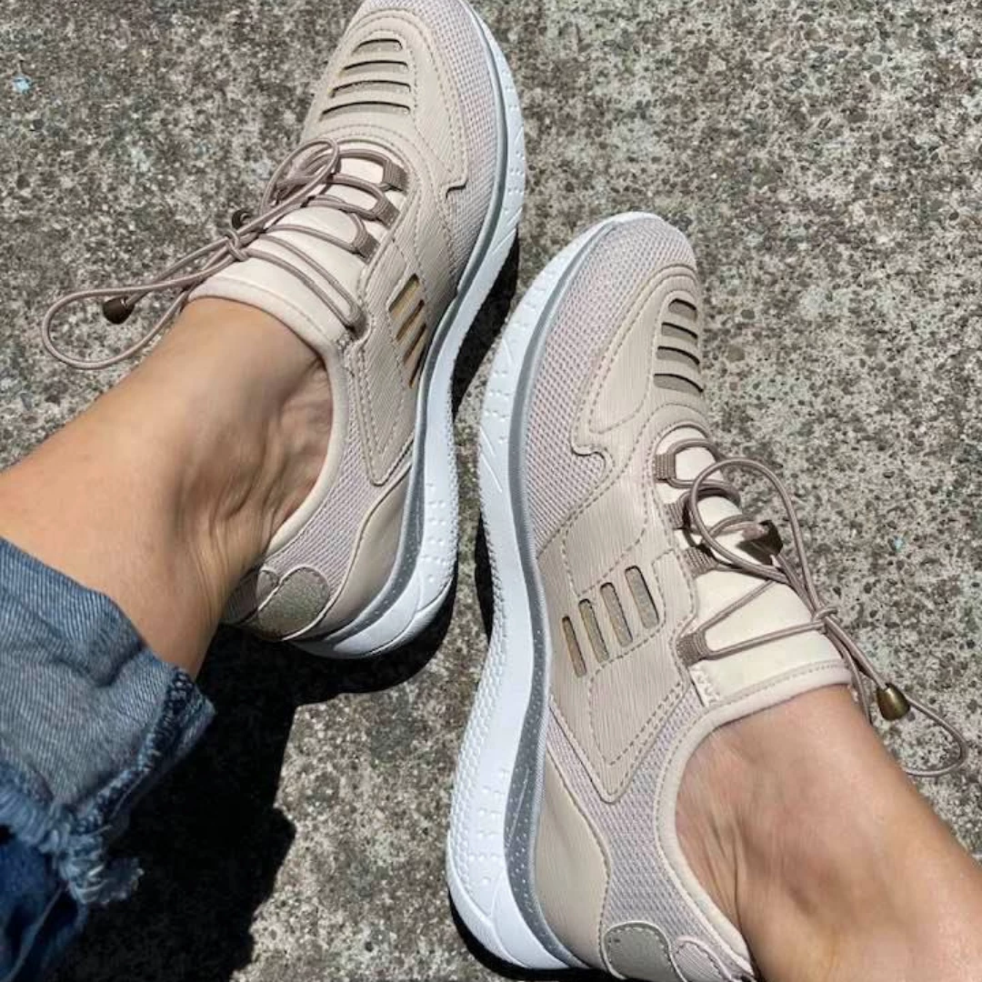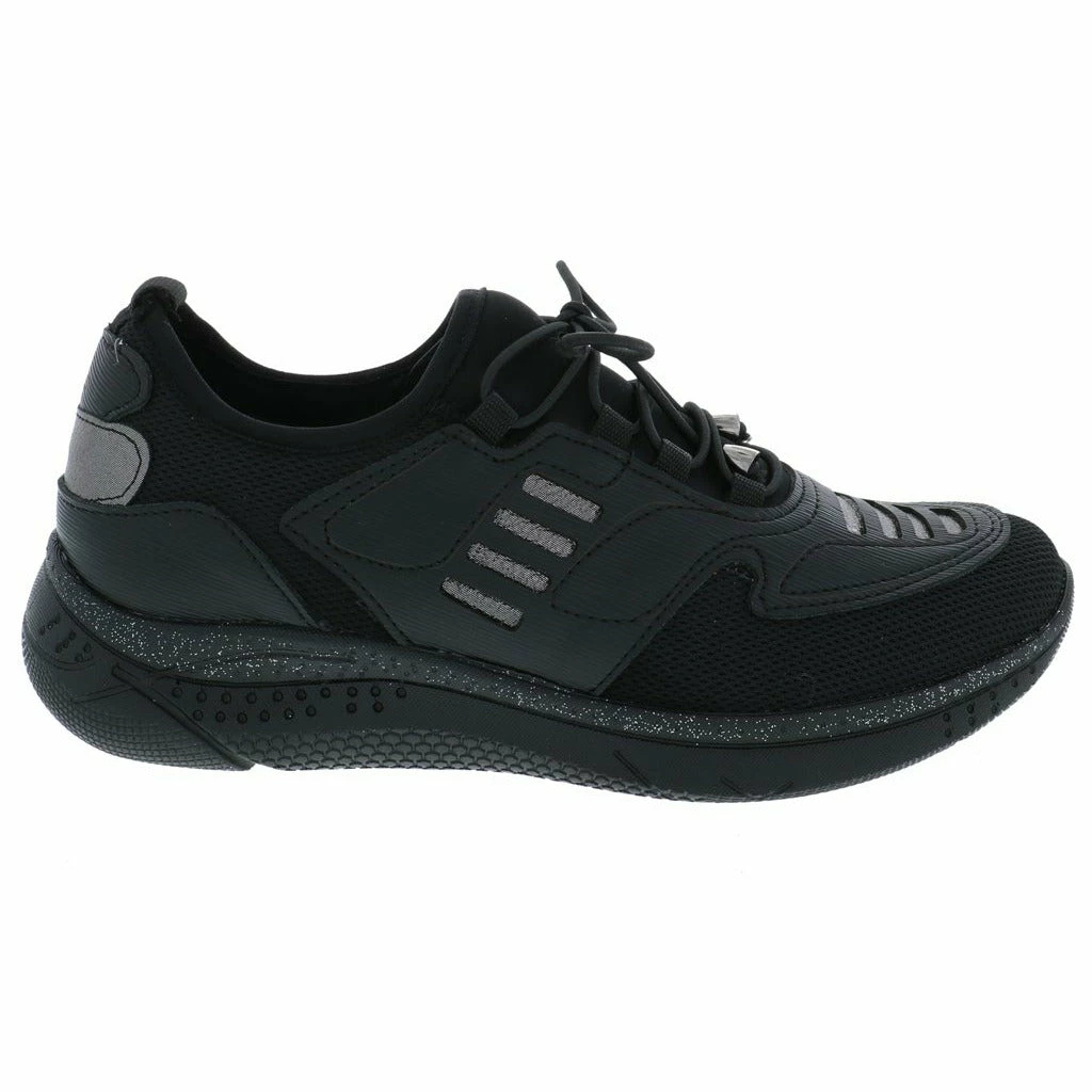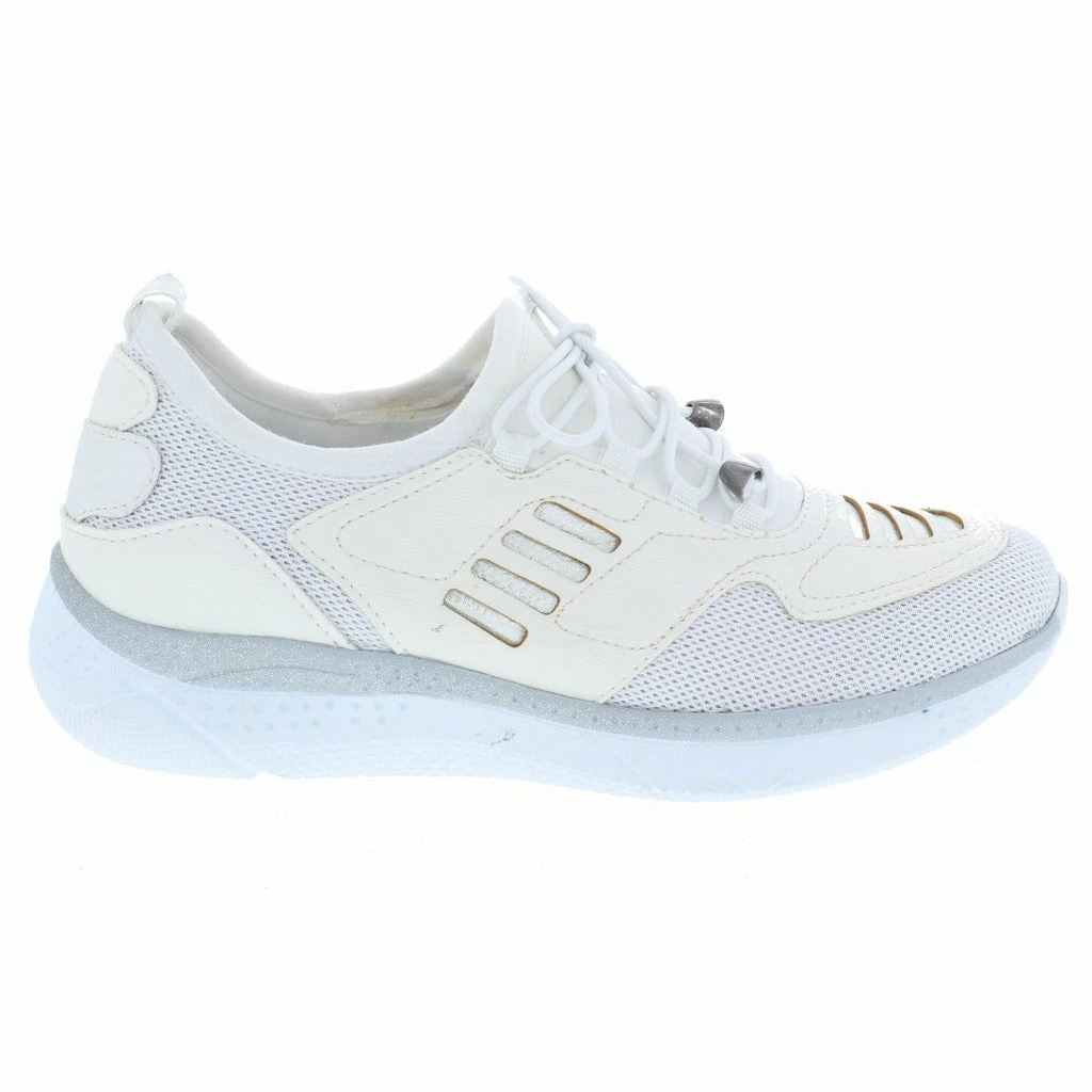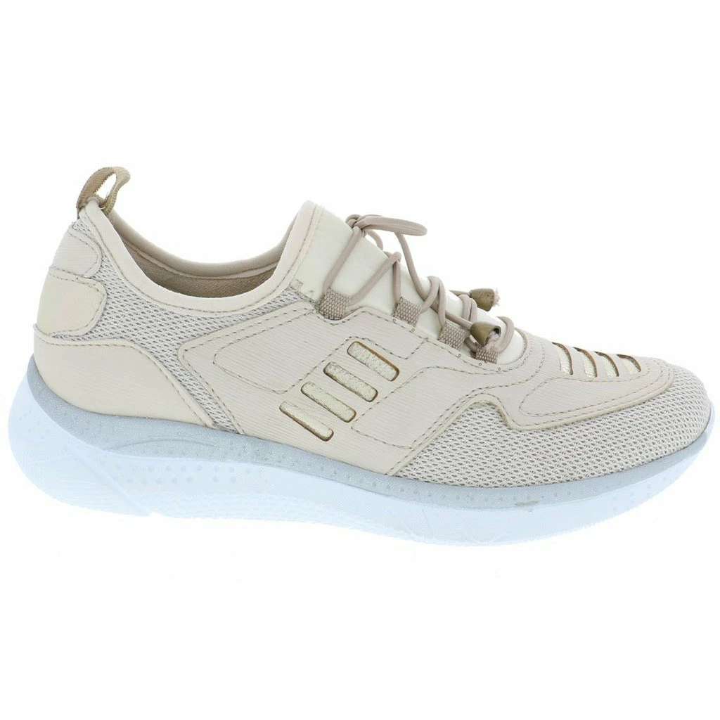 Lace up and go in this stylish slip on women’s walking shoe by Venus. This fabric and mesh light weight sneaker features a modern design with unique lines and details. The removable plush cushioned insole absorbs shock and can also accommodate a personalized orthotic. The polyurethane outsole is light weight and durable keeping you moving ahead in stylish comfort.